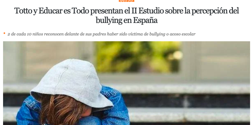 Totto y Educar es Todo presentan el II Estudio sobre la percepción del bullying en España Categoría: medios-espPor Francesca Loprieno30 abril, 2021Deja un comentarioNavegación entre proyectosAnteriorProyecto anteriorMoviloniaSiguienteProyecto siguienteDIRCOMFIDENCIAL