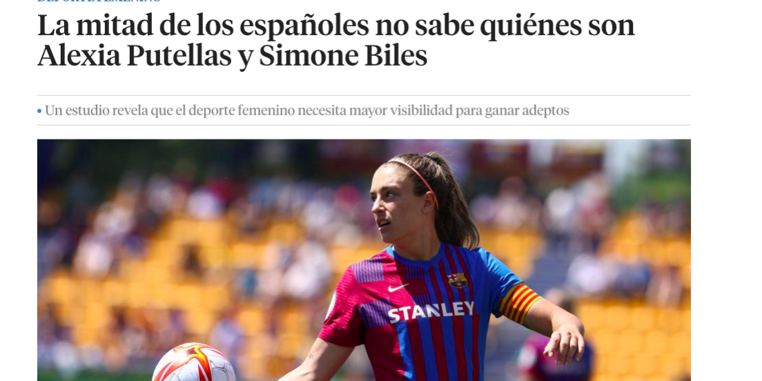 La mitad de los españoles no sabe quiénes son Alexia Putellas y Simone Biles Categoría: medios-espPor Francesca Loprieno20 septiembre, 2022Deja un comentarioNavegación entre proyectosAnteriorProyecto anteriorLaVanguardiaSiguienteProyecto siguienteGym Factory